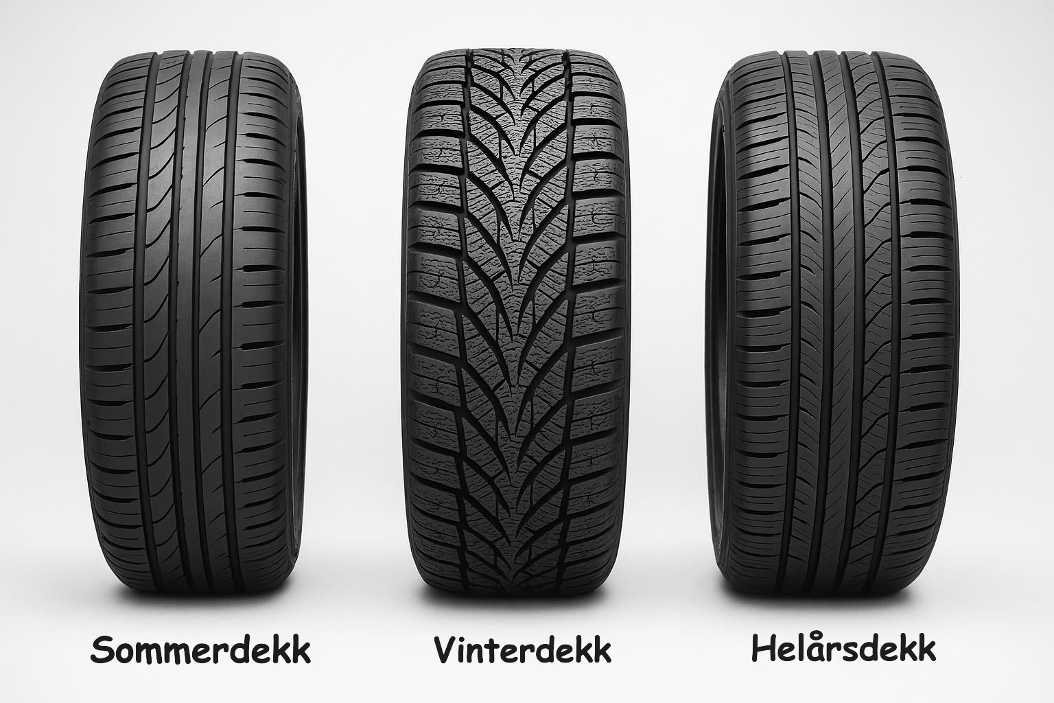 - Sommerdekk, vinterdekk og helårsdekk.